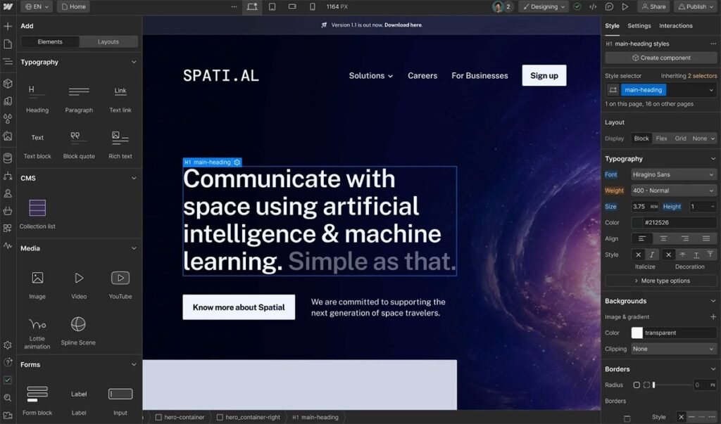 2) Webflow — Strong for structured dashboard pages